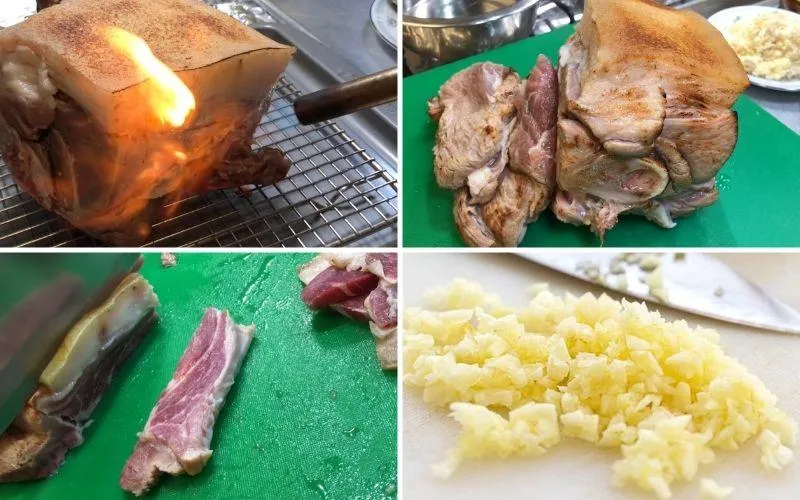 Bước 1: Xử lý da heo rừng bằng nhiệt (Khò lửa)