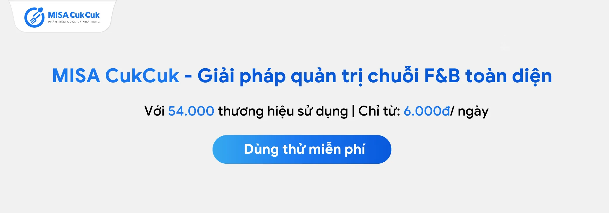 Nếu bạn đang ấp ủ dự định kinh doanh dịch vụ F&B, chẳng hạn như nhượng quyền gà rán Hàn Quốc, đừng quên rằng giải pháp quản lý chuyên nghiệp như MISA CukCuk sẽ là trợ thủ đắc lực giúp tối ưu quy trình vận hành, từ khâu order đến quản lý kho bãi, giúp bạn tập trung hoàn toàn vào việc tạo ra những miếng gà chất lượng nhất.