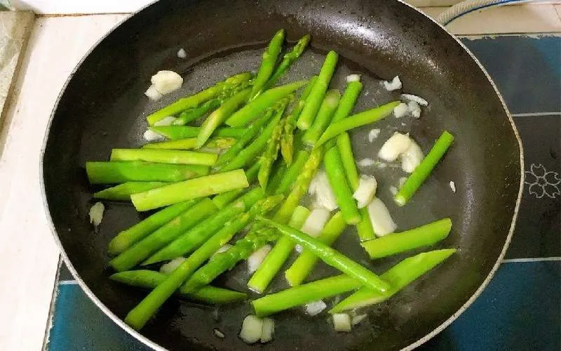 Xào măng tây với lửa vừa để giữ độ giòn