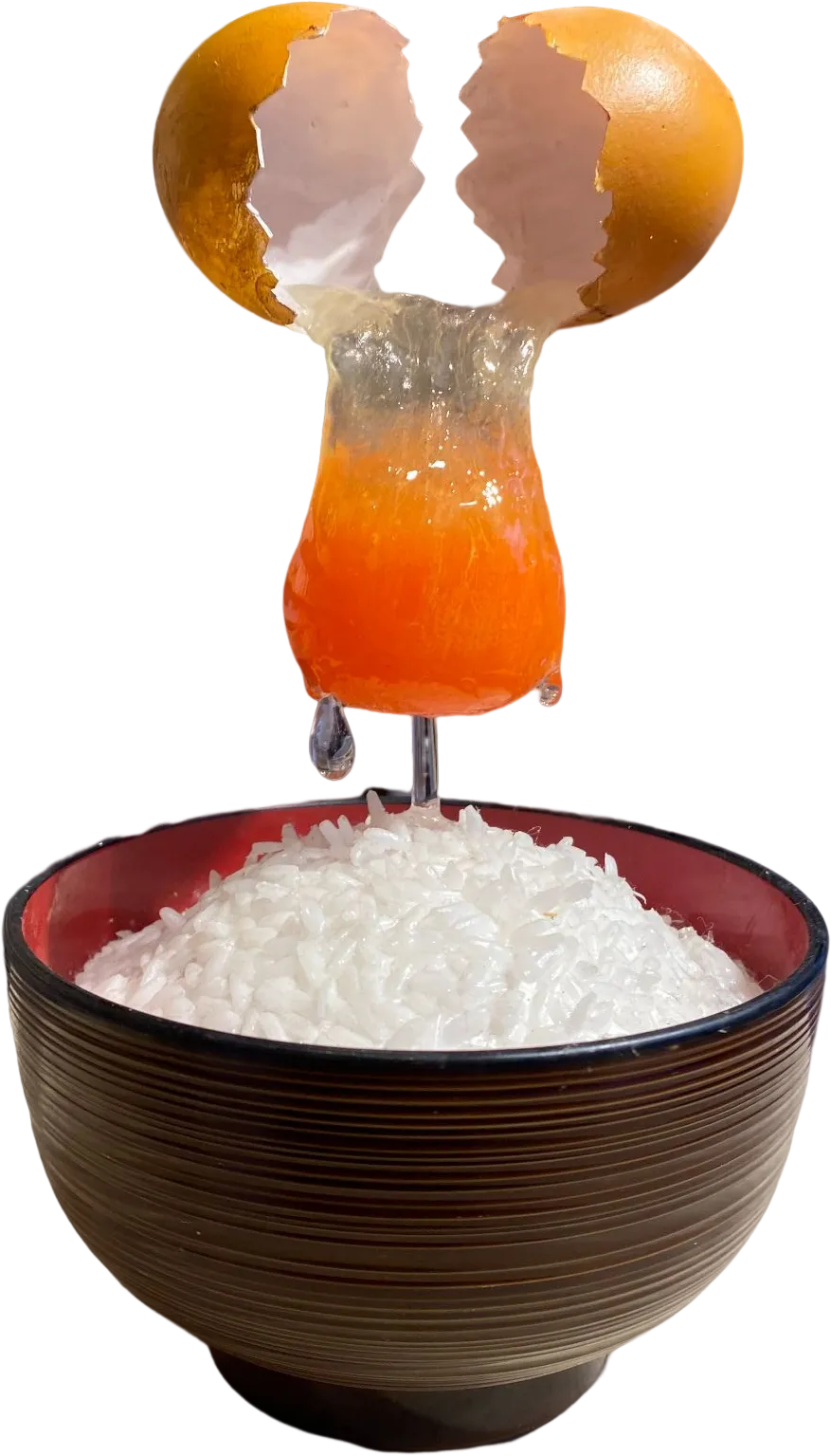 Được thiết kế tỉ mỉ tới từng chi tiết gia vị như hạt tiêu, hành ngò và độ sánh đặc đặc trưng của món cháo (juk 죽). Trong khi cháo thật thường kém hấp dẫn khi để lâu do hiện tượng xỉn màu và nguyên liệu bị chìm xuống dưới, thì mô hình đồ ăn giả lại duy trì bố cục rõ ràng. Màu sắc bắt mắt và sự sắp xếp tinh tế giúp kích thích vị giác của người nhìn, tạo cảm giác món ăn luôn nóng hổi và đầy đặn như vừa mới ra lò.