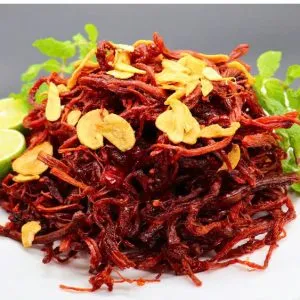 Khô bò sợi hoặc khô bò miếng mang lại trải nghiệm khác nhau về cấu trúc. Sợi thịt dai mềm khi nhai kỹ sẽ tiết ra vị ngọt thanh xen lẫn vị cay nhẹ của ớt tươi. Đây là nguyên liệu đồ ăn vặt không thể thiếu nếu bạn muốn xây dựng một combo đồ uống mạnh mẽ và ấn tượng.